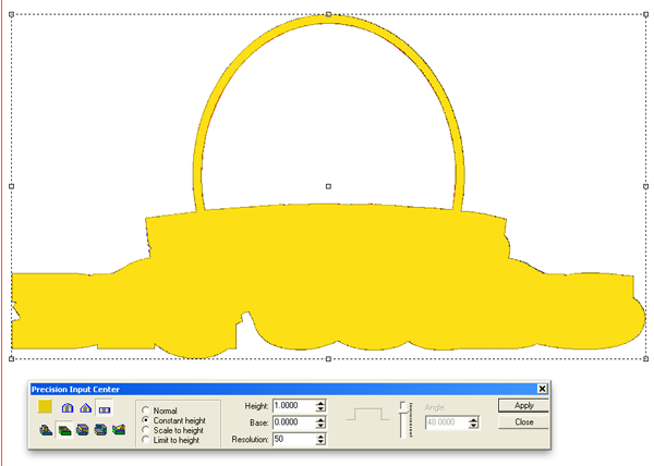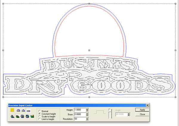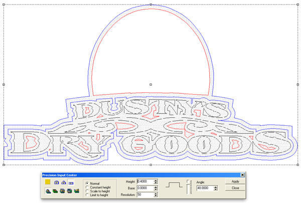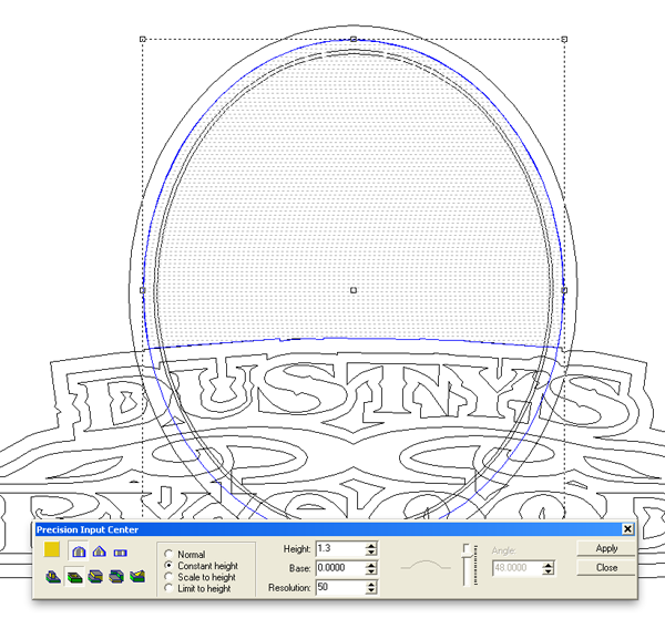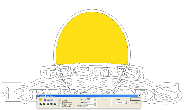 The last step was to add the bevel letters. I used a base of 0.2″ and constant height.