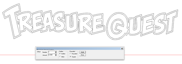Then it was on to begin creating the routing file. I started with a nice cartoon font which I bought for the park logo called PiekosFX. But as usual for my style I didn’t keep it looking like it came out of the box. I adjusted the angle of the downstroke of the R and shortened the top down stroke of the S. I also resized and then thinned down the T and the Q. All of the kerning was adjusted to my liking as well. I also kept the name of the play park on one line to keep the sign a little thinner and longer than in the original design.