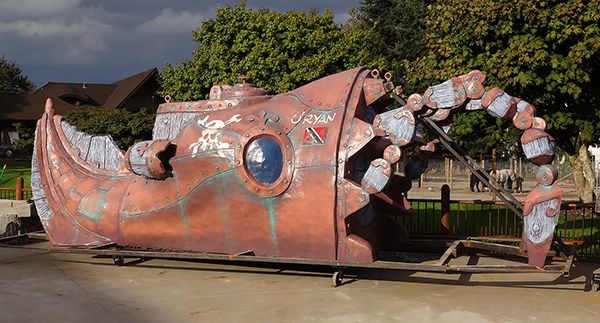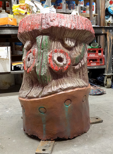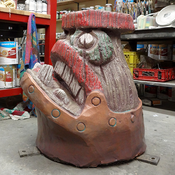 We are now three months (of eleven) into the Skallywag Bay Adventure Park project. The shop is full of projects on the go and out in the parking lot there are enough finished pieces to fill three forty foot shipping containers with enough pieces still left to begin loading two more containers. Forty-one pieces are finished. Eleven pieces are sculpted and ready for paint. Fourteen more armatures are welded and ready for sculpting.