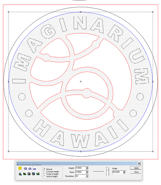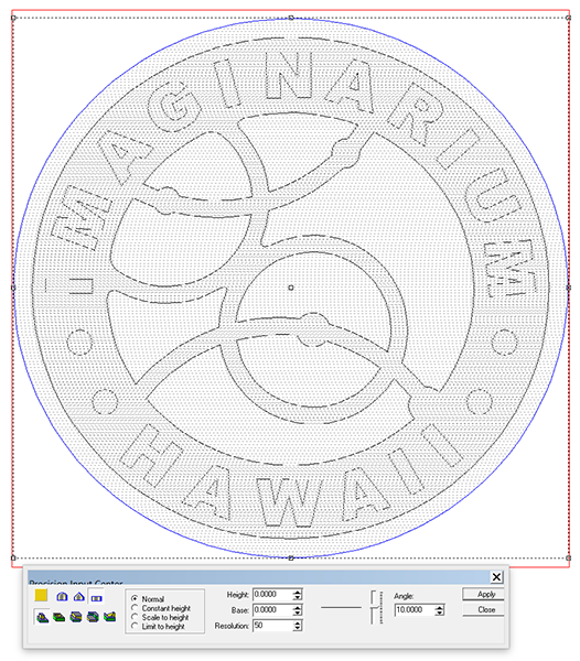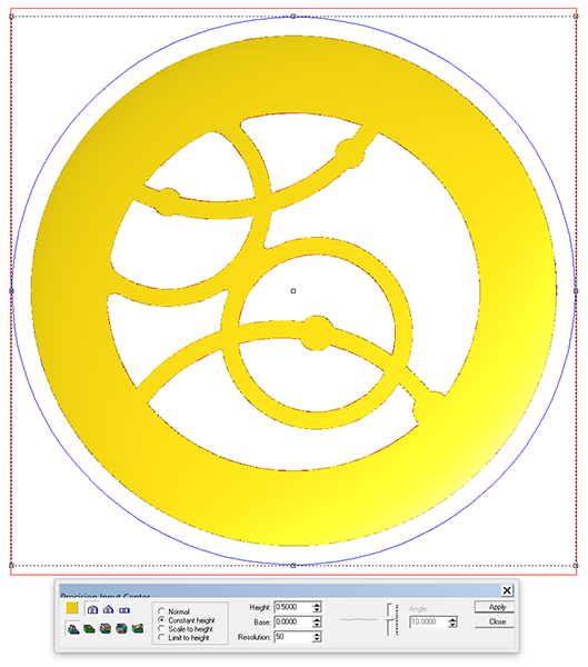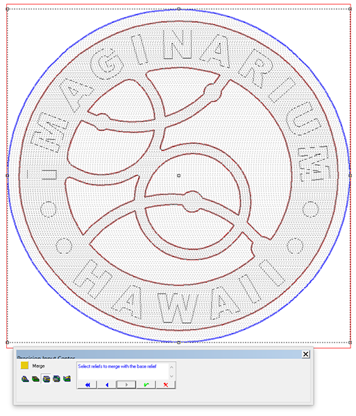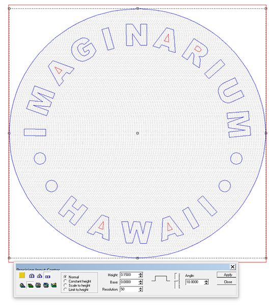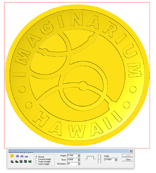 The flat relief was then modified using the dome tool and the outside circle vector.