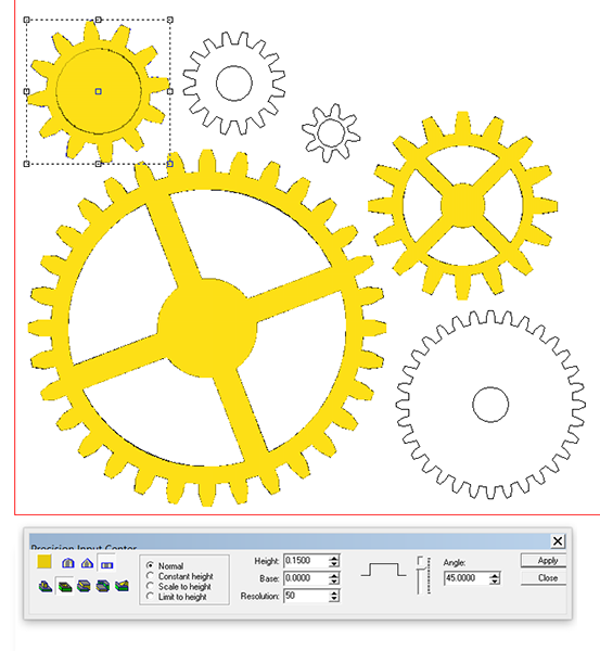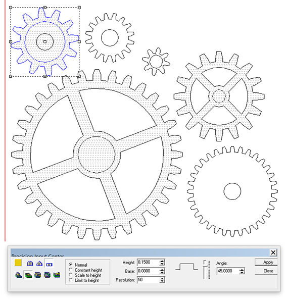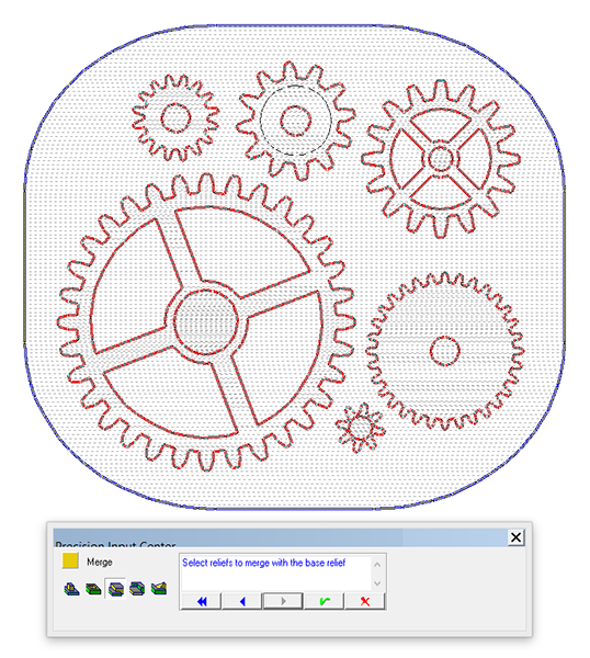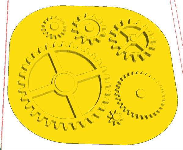 The gears in fact would be the first reliefs I created – all as simple flat reliefs with raised and sunken portions plus different thicknesses to the two types of gears.