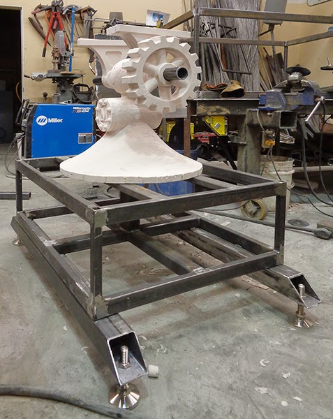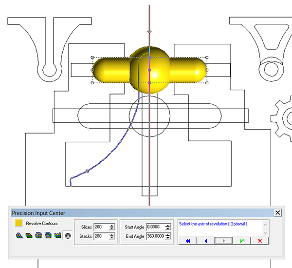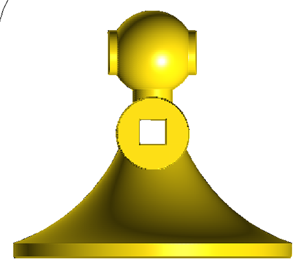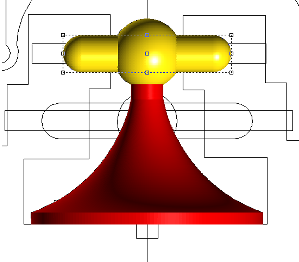 The upper portion and motor base of the lectern stand was a challenging piece to build. There were a number of ways I could have handled it but I chose to do it with a combination of domed reliefs and one mesh. The piece we were building today was shaped a bit like a funnel with a horizontal tube in the middle and a lightbulb shaped thing on the top. An axle would go through the top part for the big gears and through the horizontal tube (‘motor’) for the smaller gears.