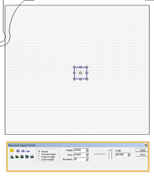 Since the horizontal motor would have some square tubing inserted down the middle I created a zero height relief for that and modified the base relief by merging lowest with that square shape.