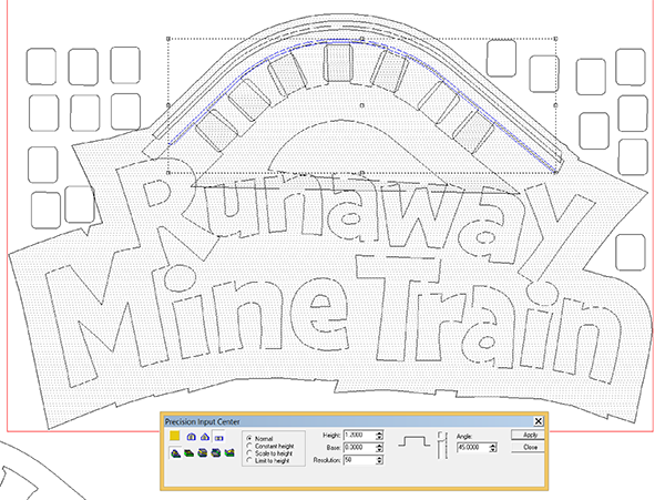 Then it was time to build the curved beam and tracks. These reliefs were built separately. The beam and rail center were done at the same height.