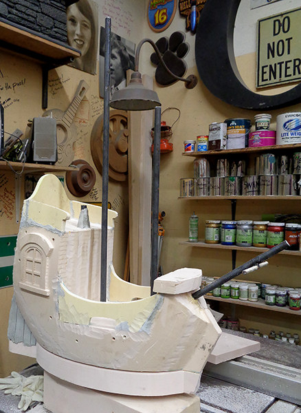 When we picked up the project(s) we added a few missing pieces which we quickly cut on the bandsaw. The armatures for the ship’s masts were made from 5/8″ steel rods.