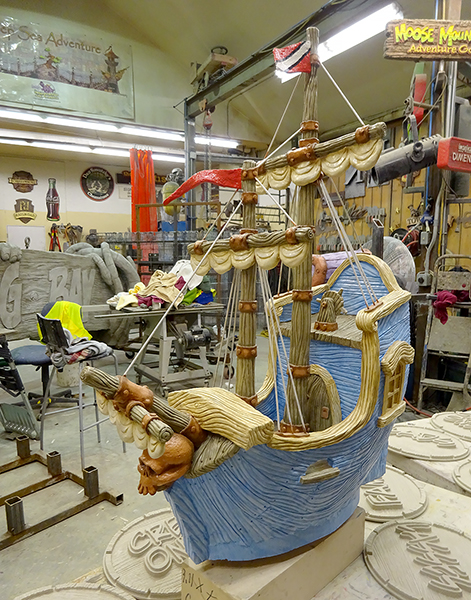 One of the first pieces we designed and routed for Scallywag Bay Adventure Park was in fact among the last to be finished. I designed the hull shape for the small ship and posted it back in May of 2014. Here’s the two step by step entries of that process… Entry one Entry two