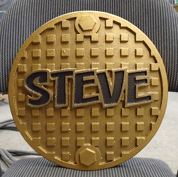 Steve’s plaque was first painted with three coats of metallic gold. The last coat has a subtle blend of three colors of gold with the lightest being on the top and fading down. The tops of the plaque is a solid shade of gold. The inside of the sunken letters then were painted a very dark shade of brown.