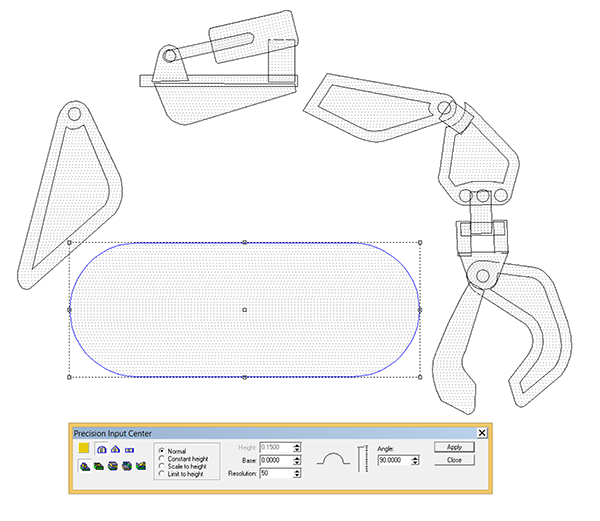 Then I began building the reliefs. The cylinders for the legs was first. I used the pill shaped vector to create a round shape using the dome tool. Then the piston rod in the same fashion.