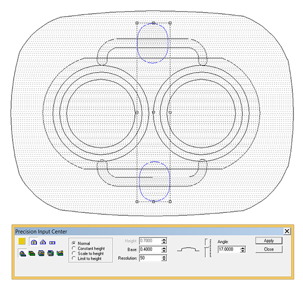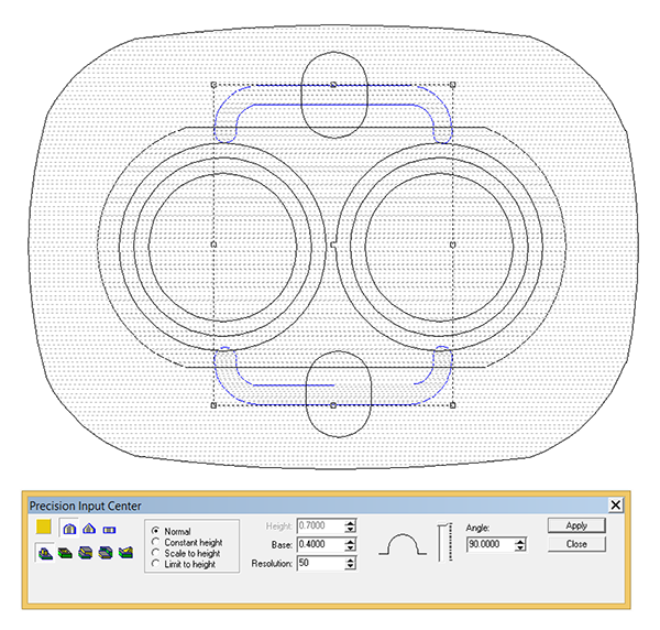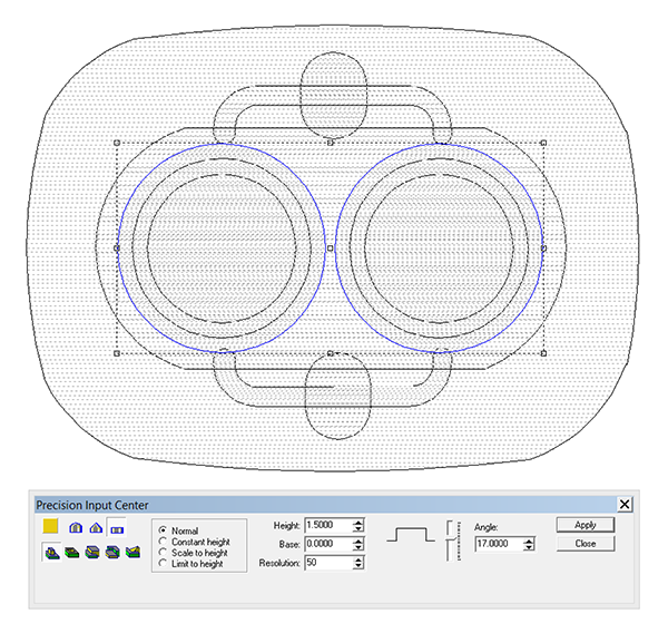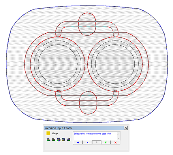 I then created a center relief with a zero height. This was merged lowest to form the hole in the center.
