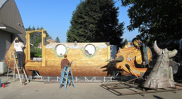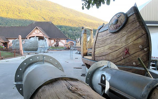 It was a holiday week which meant we only had only four workdays to complete our long list of things we needed to accomplish. The shipping date for the first ship and related pieces is set for next Tuesday. That morning, bright and early a giant crane and six 40′ container trucks will be waiting. That’s enough to hold one complete Viking ship, two masts, the keels and the balance of the target feature pieces. A few weeks later the final five containers will begin their journey to Dubai. The pressure was on.