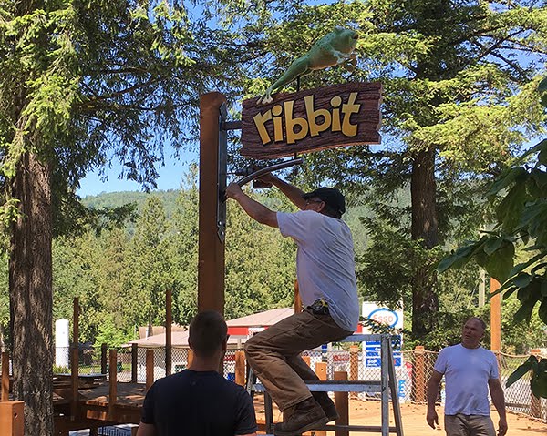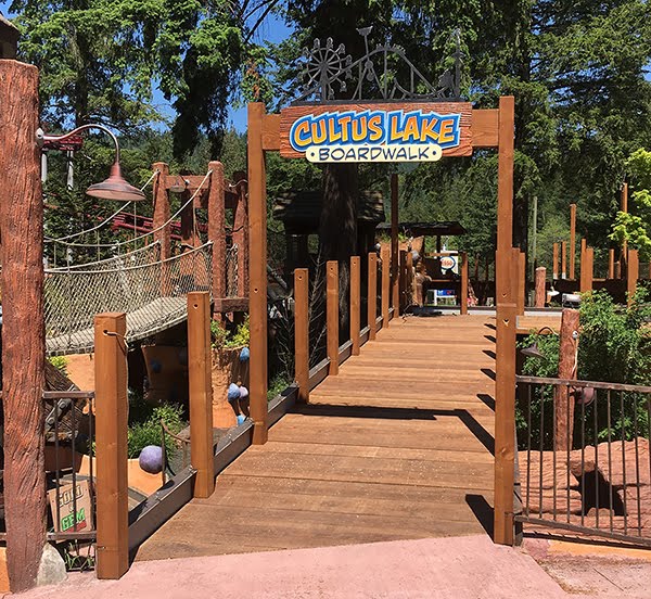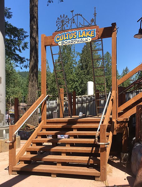 I love it when installations are painless and quick – just as we plan. The four signs for the Cultus Lake Boardwalk fell into this category. To install we measured thing up and marked the beams, then walked the signs up two ladders, positioned then and bolted them into place with lag bolts. It took less than five minutes per sign to do the installation.