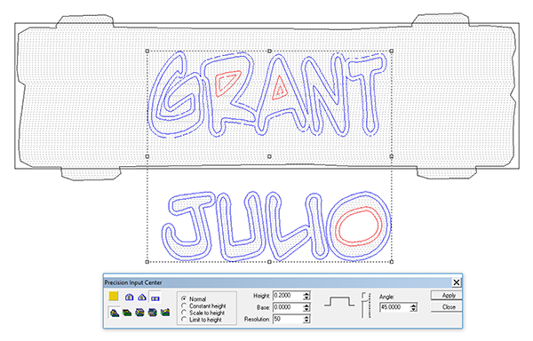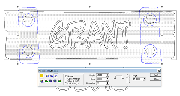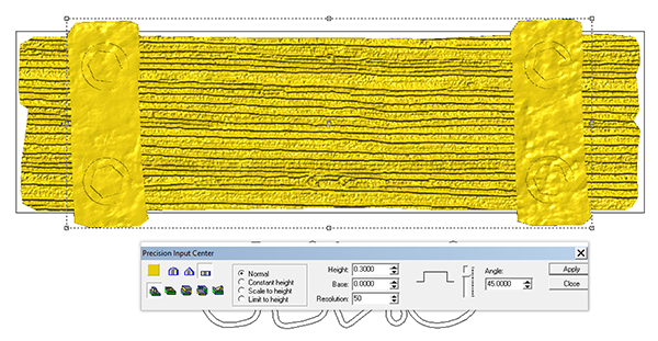 I imported a second bitmap to add some texture to this band. I input a value of 0.1″ for this procedure.