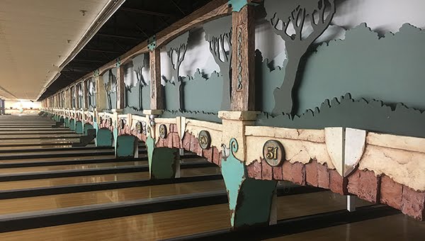 The NEB’s crew was still lifting the last of the posts into position as we worked and has yet to cut and install the ceiling flats but it is coming together quickly. The tough part of the job is that they did it without shutting down more than a few lanes at a time. While they worked guests were still bowling around them. Below i