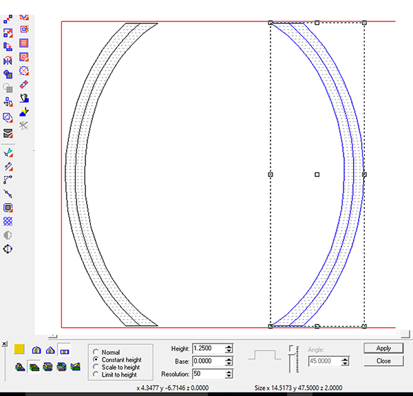 Lastly we created a 2″ filler layer. This was done as a simple offset cut file. We cut this in sections which would allow for the welded structural steel frame to be put inside the outer layers.