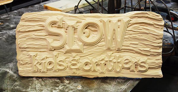When the glue had cured on the signs I used my die grinder to carve woodgrain into the edges of the sign.