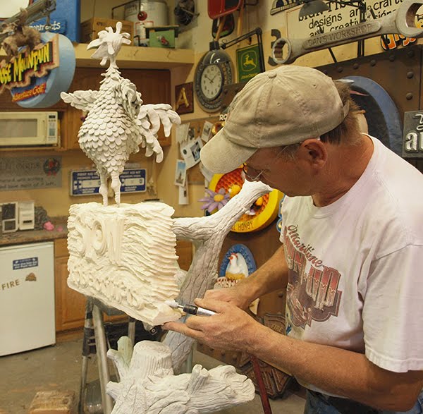 The roosters feet could then be carved to look like he was tightly gripping the top of the sign.