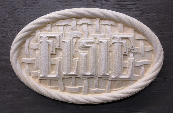 The third glaze is a dark brown and this is wiped off quite a bit. Once this has dried we go back with a brush and add the glaze on the border around the letters. This dark colour makes them pop. Once the last glaze was dry we painted the letters metallic gold.