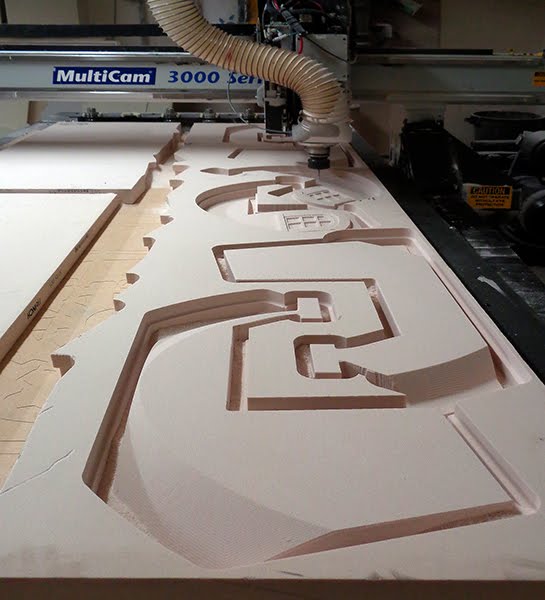 We routed he hulls of the ships from multiple layers of 2″ thick 30 lb Precision Board.