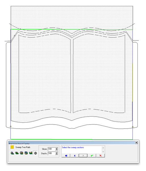 The book was then next step. It took some head scratching as there were a few things that made it tricky… the first being the 45 degree edges on three sides. But after some thinking I figured it out. I created a book shaped vector – shaped like a flying bird. I also made two vertical lines which would be the rails I would use to create the mesh using the sweep two rails function. But first i created a relief using the bevel tool.