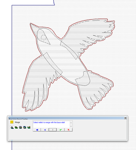 With all the reliefs created it was time to add them to the crest. I used the merge reliefs tool for this task but selected the add to command.