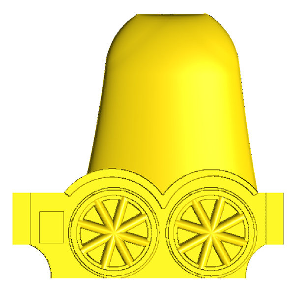 I then created the lower relief and combined it with the top domed piece. The front and rear bumpers, steam cylinder supports, and fenders were created as separate reliefs. The bumpers and fenders were combined with the big relief.