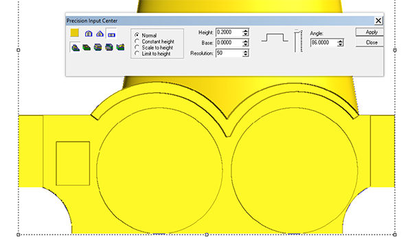 The easiest way to create the wheels was so do the various components as separate reliefs. I started with the wheels. I first created a flat relief using the outermost circle. This formed the flange of the train wheel.