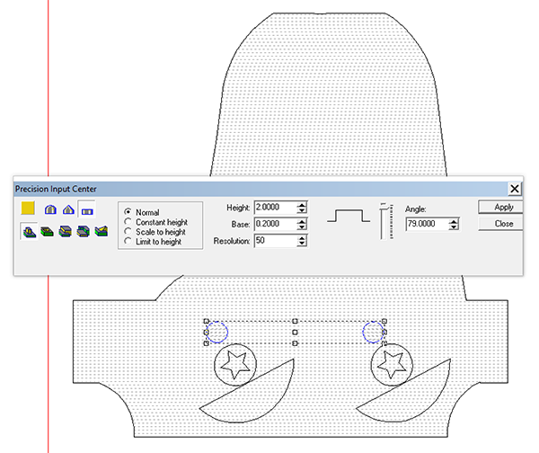 I designed the vectors in EnRoute. The first task was to create the domed top.